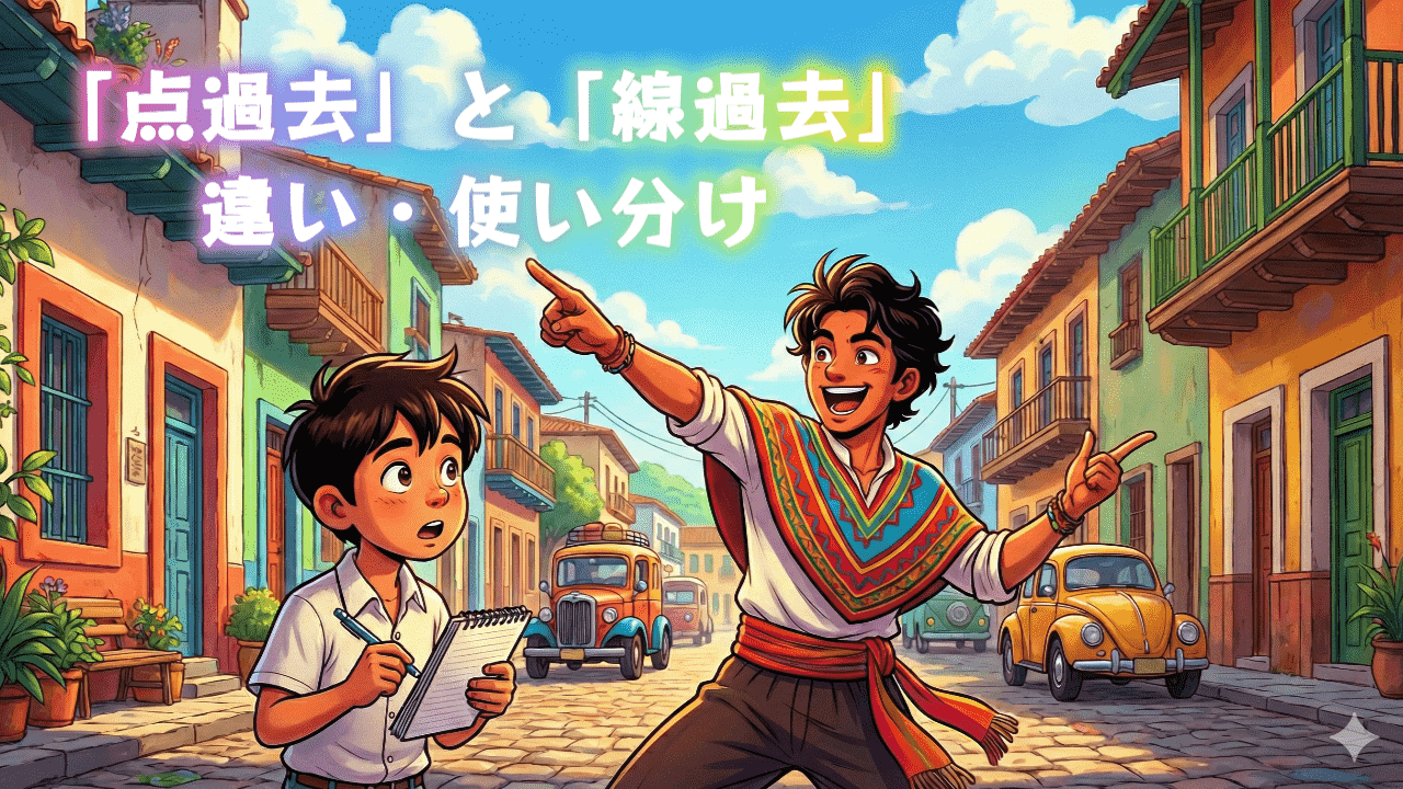 スペイン語の「点過去」と「線過去」の使い分けに悩んでいませんか?本記事では、ラテンアメリカのスペイン語をベースに、2つの過去形の違いを「カメラとビデオ」「役者と舞台」のイメージで分かりやすく解説。動詞によって意味が変わる要注意ポイントも網羅した完全ガイドです。