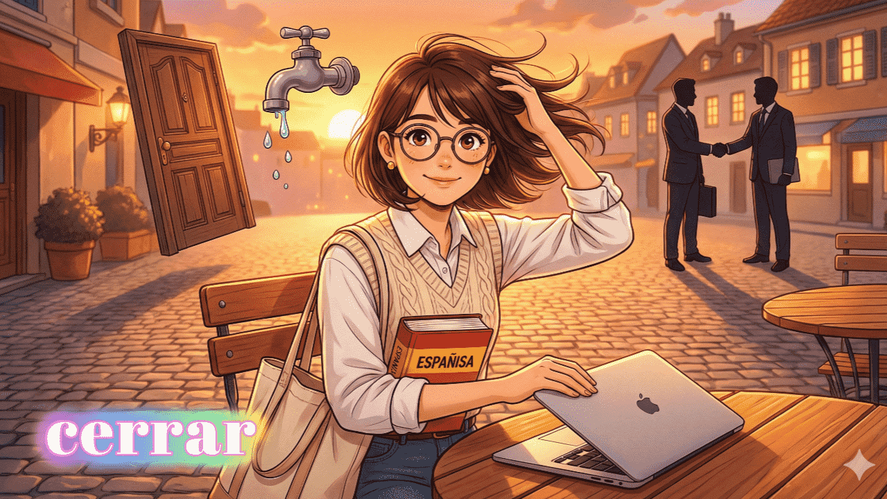 スペイン語の動詞 cerrar は「閉める、閉じる」という意味を持つ、日常会話で非常に頻度の高い単語です。