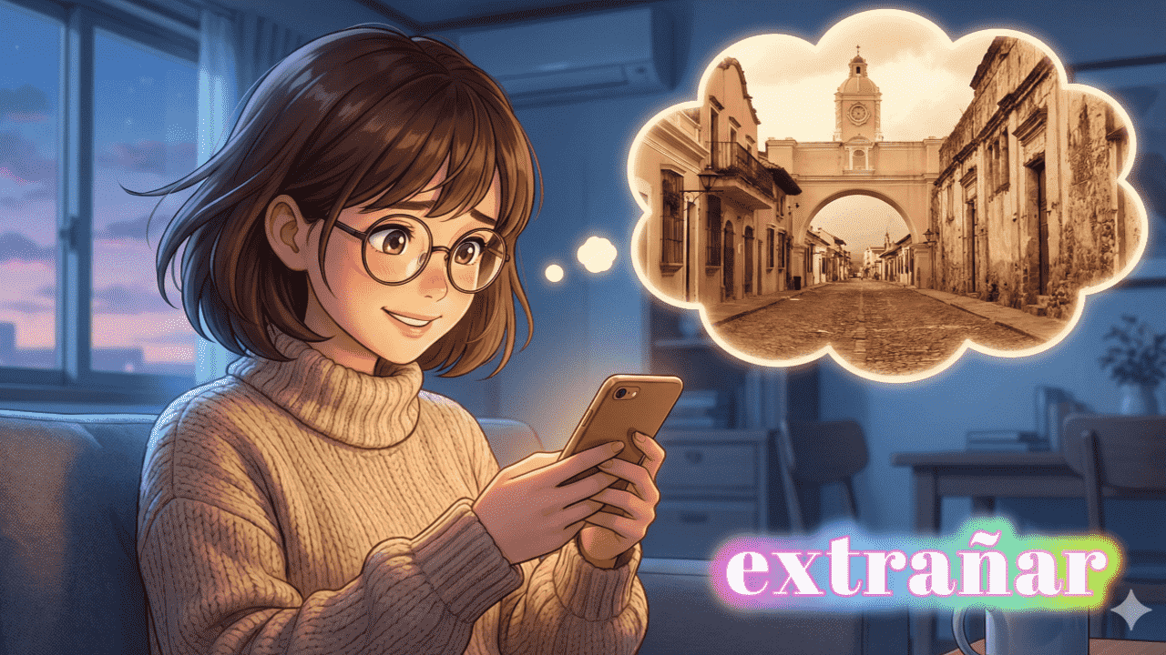 スペイン語の動詞 extrañar のすべての活用と基本的な意味を紹介しています。