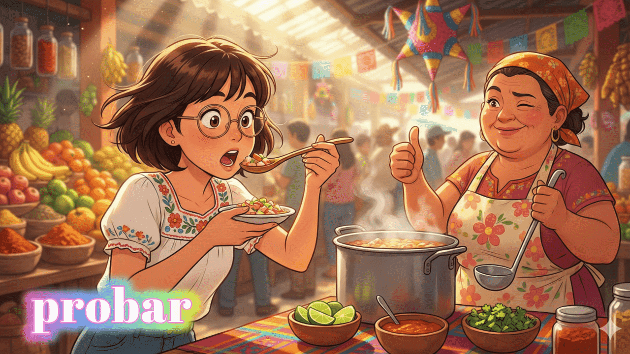 スペイン語の動詞 probar のすべての活用と、日常会話で使われる基本的な意味、そして学習者が迷いやすい類義語との使い分けについて解説します。