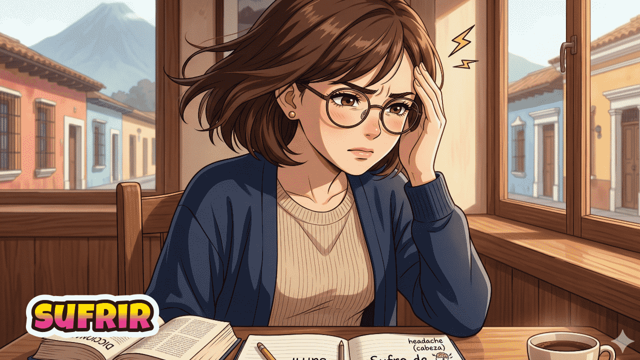 このように、sufrir には辞書上「我慢する」という意味もありますが、現代の日常会話では別の単語が好まれる場面があります。本記事では、すべての活用表を確認したあと、ネイティブが実際に使う自然な用法と、類義語との違いを解説します。